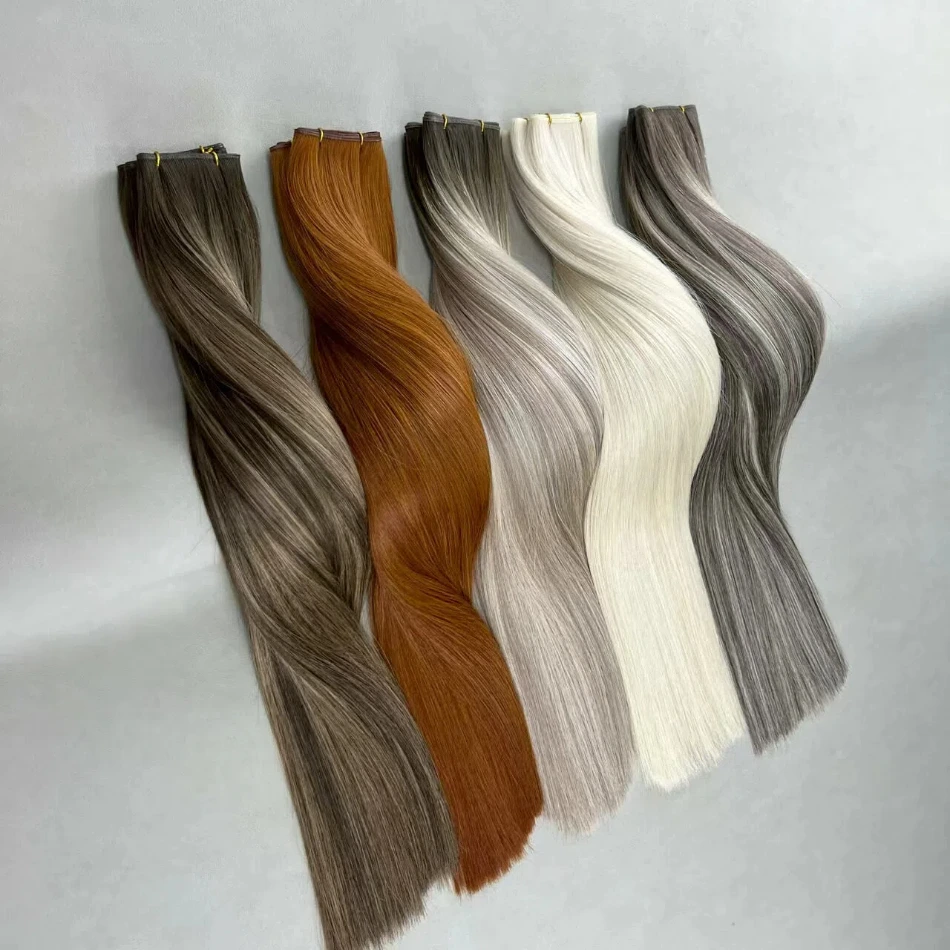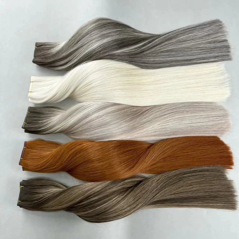 심리스 헤어 익스텐션은 손으로 엮은 헤어 익스텐션의 자연스러운 모습과 기계로 엮은 헤어 익스텐션의 내구성을 결합한 고급 헤어 익스텐션 기술입니다.
