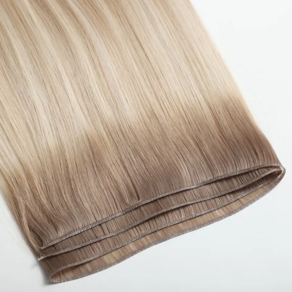 두께가 0.5mm에 불과한 이 씨실은 두피에 편평하게 놓여 있습니다. 업스타일, 포니테일, 가는 머리 스타일에도 숨겨져 있습니다. 자연스러운 머리카락과의 조화가 완전히 자연스러워 보입니다.