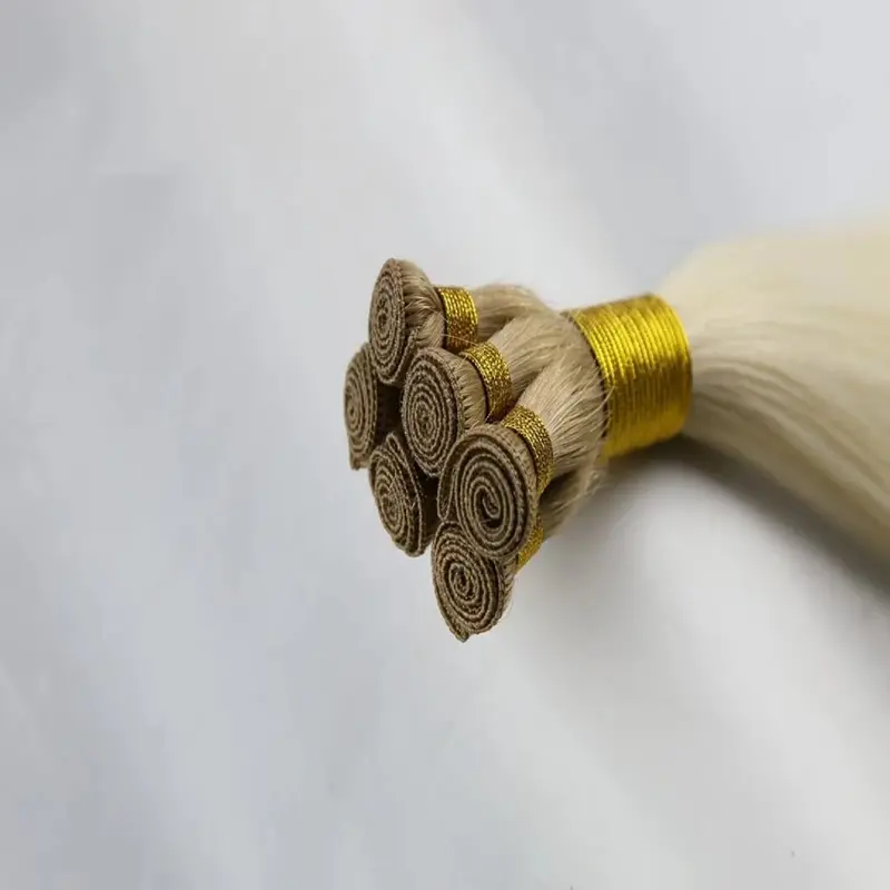 가장 얇은 위사 이후에 사용 가능합니까? Lum Hair의 핸드 타이드 헤어 익스텐션이 당신의 선택입니다. 손으로 묶은 이 위사는 두피에 매우 평평하게 놓여 있어 접착제 없이 원활하게 설치할 수 있습니다. 이 제품은 탈모를 유발하지 않고 얇은 모발, 가는 모발, 두꺼운 모발, 굵은 모발 등 모든 모발 유형에 적합하며 전통적인 모발 적용 방법과 비즈 적용 방법 모두에 완벽하게 작동합니다. 우리는 이러한 위사를 길이에 따라 45g에서 60g 사이의 무게로 묶음 팩으로 제공합니다. 각 팩에는 4개 위사가 포함되어 있어 고객이 필요에 따라 헤어 컬러를 혼합하고 일치시킬 수 있는 완전한 유연성을 제공합니다.