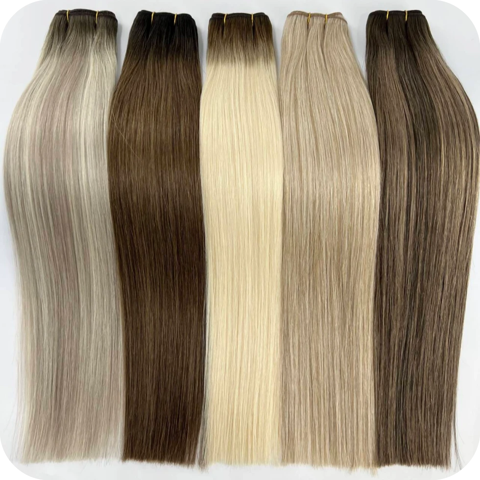 당사의 기계 씨실 헤어 익스텐션은 최고 품질의 레미 인간 모발로 만들어졌으며 큐티클이 엉키거나 흘리는 것을 방지하여 자연스러운 모발과 완벽하게 혼합되는 자연스럽고 부드러운 질감을 제공합니다. Lum 헤어 씨실은 매우 다재다능하며 다양한 길이, 웨이브 패턴 및 색상으로 제공되어 컬링, 스트레이트닝 및 염색과 같은 자유로운 스타일링이 가능하며 다양한 헤어 유형의 다양한 요구 사항과 스타일링 선호도를 완벽하게 충족합니다. 전 세계 미용실 전문가와 헤어 애호가들이 선호합니다.