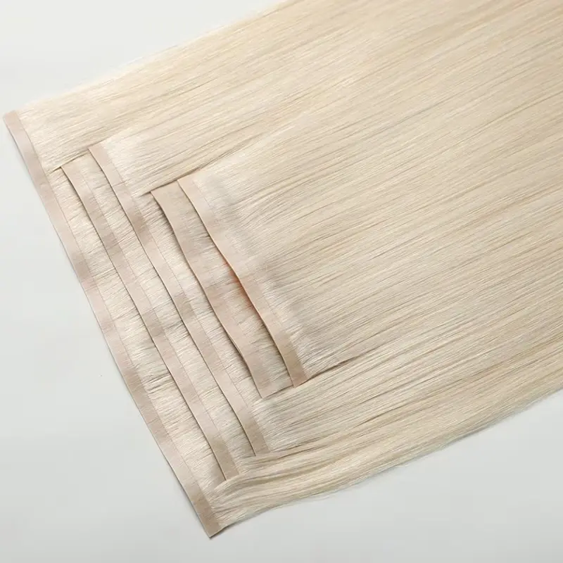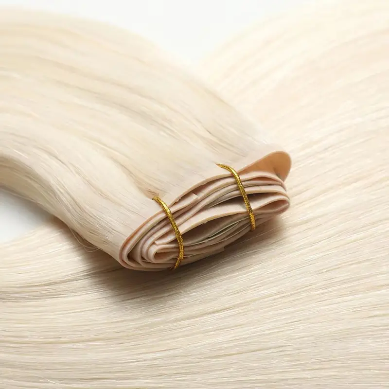 무봉제 플랫 위사: 매우 얇고 편평한 위사 디자인이 천연 모발과 완벽하게 조화를 이루어 자연스러운 느낌과 느낌을 주는 눈에 띄지 않는 마감을 달성합니다.